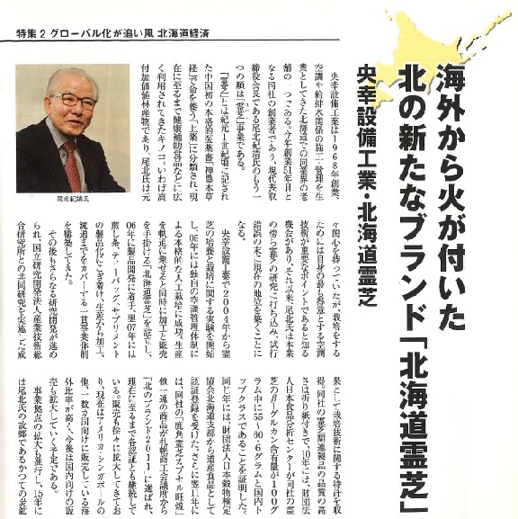 さらに翌11年には、同社の「鹿角霊芝カプセル旺煌」他一連の商品が札幌商工会議所から北のブランド2011に選ばれ、